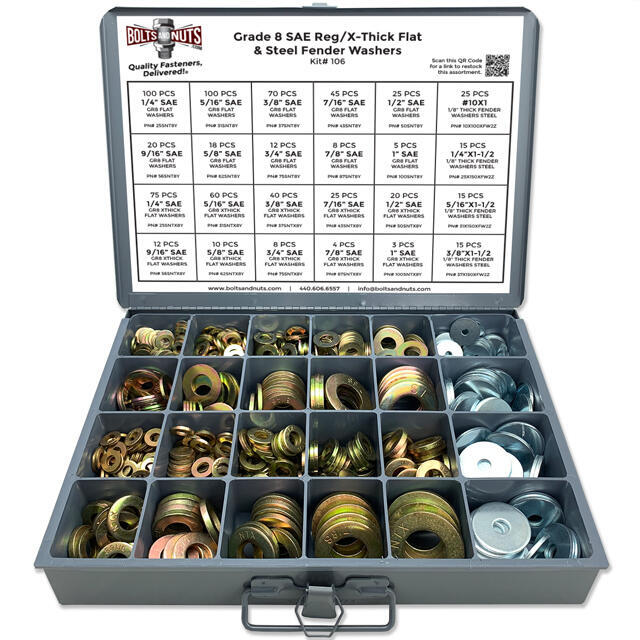 Home > Shop > Kits/Assortments > Washer Kits > Inch Grade 8 SAE Regular & Extra Thick Flat Washers & Thick Fender Washers - 731 PCS