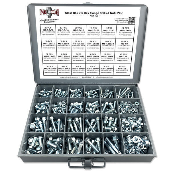Home > Shop > Kits/Assortments > Flange Product Kits > Metric Class 10.9 JIS Hex Flange Frame Bolts & Nuts Assortment M6-M10 402 PCS